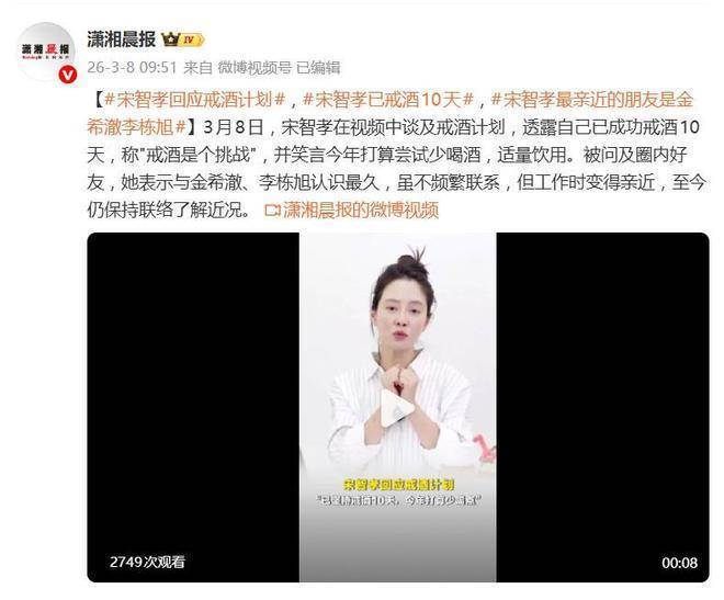 这次为期10天的戒酒挑战,对宋智孝来说或许只是一个小小的开始,但却成为了粉丝们观察她生活态度的一个窗口。从曾经的“酒神”到如今的自我挑战者,她用实际行动展现了对生活的积极态度。无论未来她是否能完全达到自己设定的目标,这种勇于尝试改变的精神都值得肯定,也让人们更加期待看到她在事业和生活中更多不同的面貌。