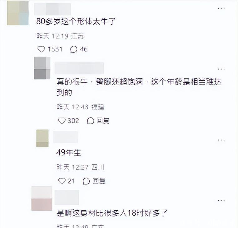 最让人服气的不是脸,是身形。背挺得笔直,步子轻快,臀部线条紧致得离谱,完全看不出岁月痕迹。网友都在喊“正版小龙女回来了”,甚至有人怀疑是不是全靠医美堆出来的。可仔细想想,到了这个年纪,光靠打针根本撑不起这种状态吧?这背后绝对是几十年如一日的狠劲儿,饮食控制、高强度锻炼,少一天都不行。这种自律,别说老人,很多年轻人都做不到。