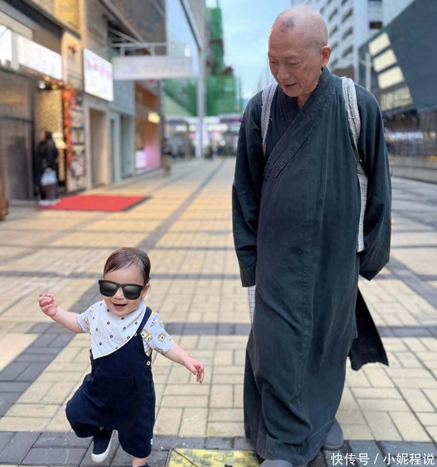 看着照片里那一老一少并肩走的画面,真挺让人感慨的。70 岁的叶青霖穿着那件洗得发白的蓝色僧袍,背着个旧布袋,头发剃得精光,两边隐约冒出的白发藏都藏不住。走在他旁边的小外孙倒是打扮得特时髦,挂着背带裤,看着还有点混血范儿,这祖孙俩站一块儿,反差大得有点可爱。听说女儿刚从澳洲回港探亲,还特意带上了小儿子,刚好赶上叶青霖出关,这一家人难得聚首,那份天伦之乐隔着屏幕都能感觉到。